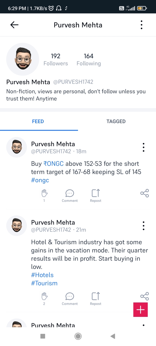 You can post insights about the Stocks, News, MFs, Commodities, and other finance grinds. Also, you can like, comment, share & repost the content of your favorite investors/influencers.