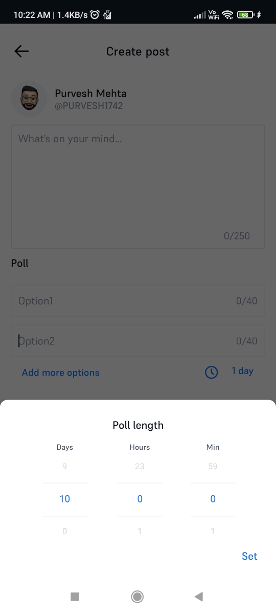 Tap on the plus icon and add options to your poll, also you can add up to 5 options.